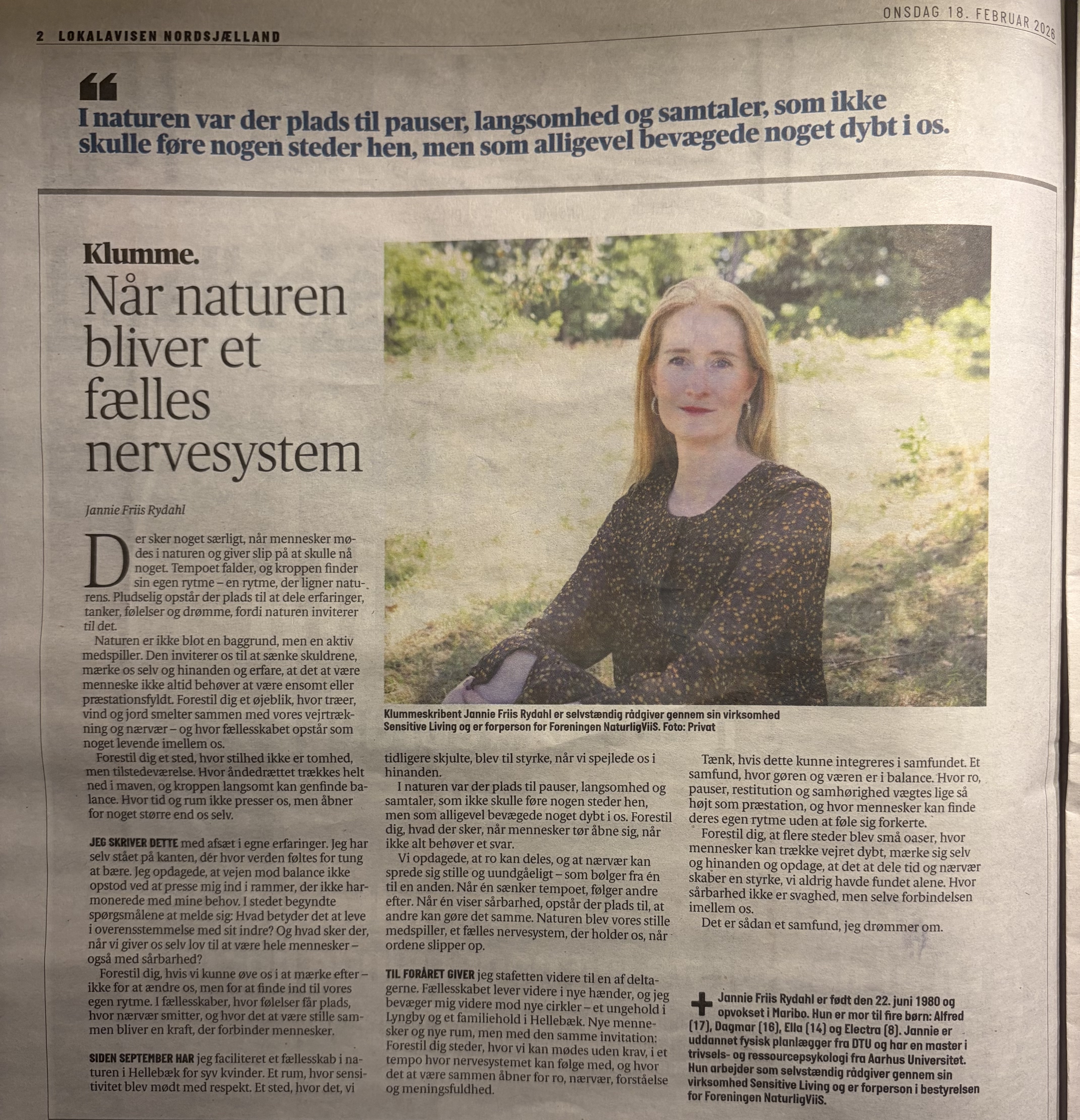 Siden september har jeg faciliteret et fællesskab i naturen i Hellebæk for syv kvinder. Et rum, hvor sensitivitet blev mødt med respekt. Et sted, hvor det, vi tidligere skjulte, blev til styrke, når vi spejlede os i hinanden.