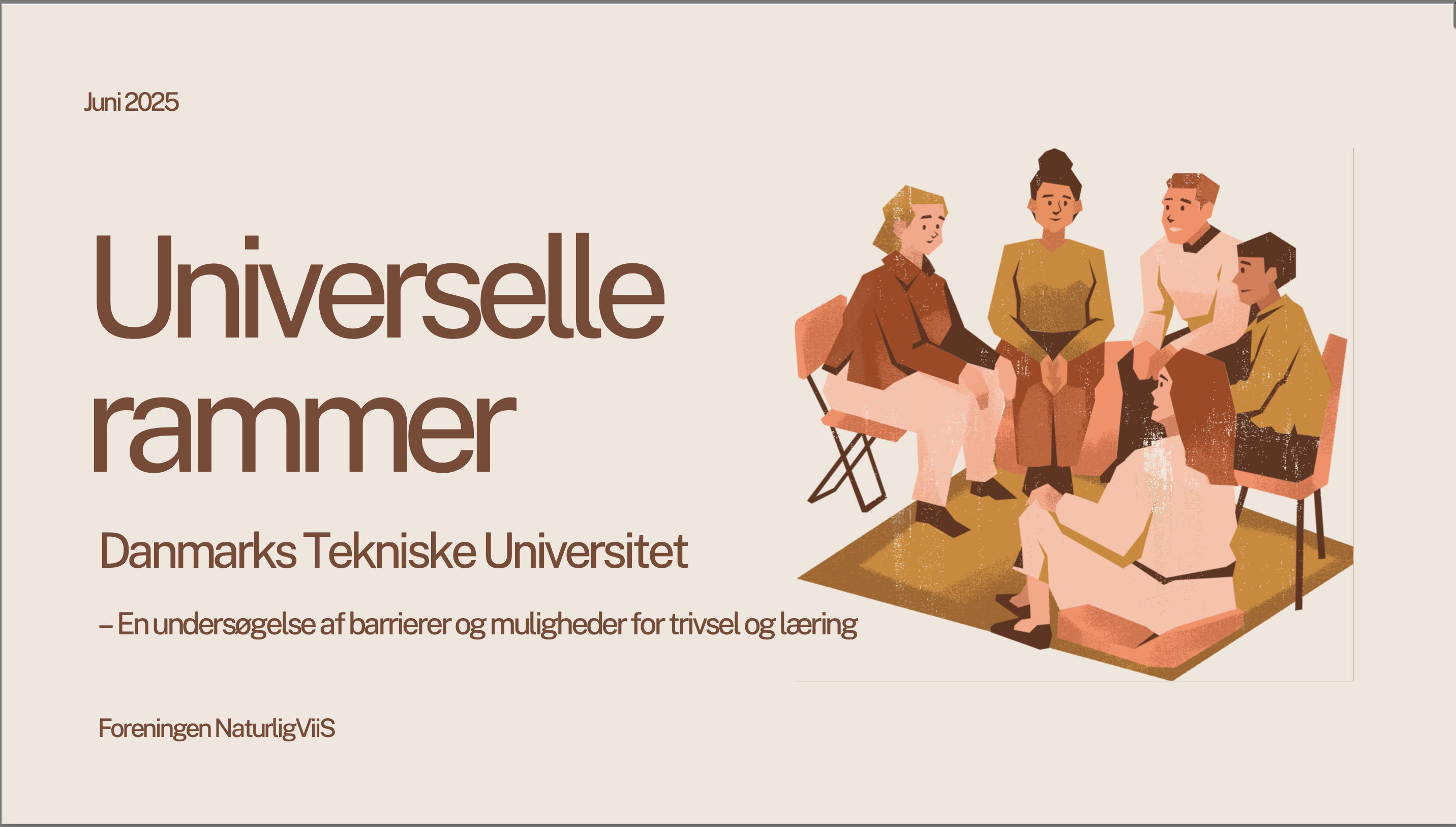 I 2025 udarbejdede jeg en rapport for Foreningen NaturligViiS, hvor jeg undersøgte barrierer og muligheder for trivsel og læring på DTU. Rapporten præsenterer både resultaterne af den kvalitative undersøgelse og konceptet UNIVERSELLE RAMMER, som kan anvendes i mange typer læringsmiljøer.